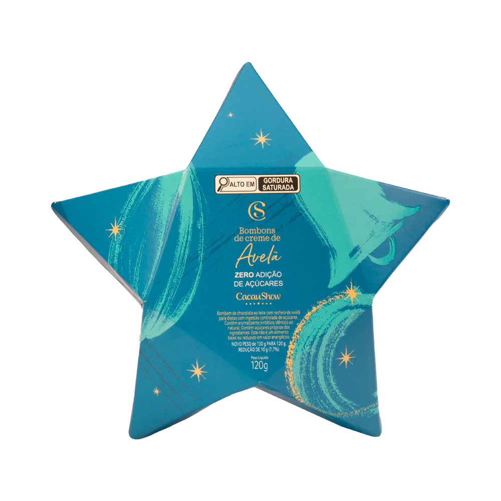 Seu visual único e simbólico traz para esse momento toda tradição e beleza, além de contar com bombons feitos com o chocolate de alta qualidade da Cacau Show e um recheio leve, a Estrela com Bombons ao Leite Zero Adição de Açúcar fará a diferença no seu Natal.